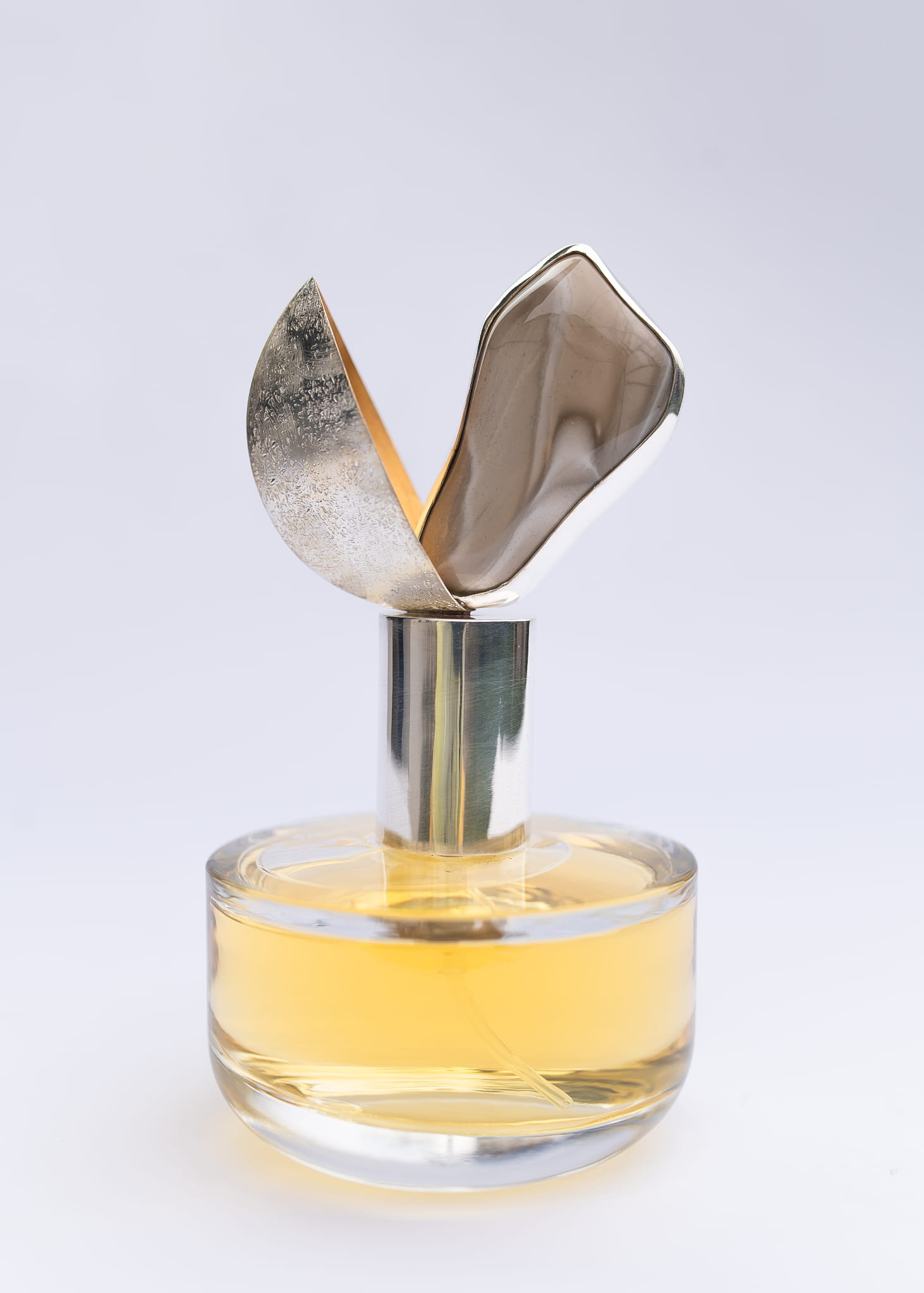 At its heart is banded flint, set in intricately forged 925 silver. The amount of silver used in each bottle ranges from 30 to 50 grams. The choice of banded flint was intentional. It is an endemic stone, found only in one place in the world, my native region of Świętokrzyskie!