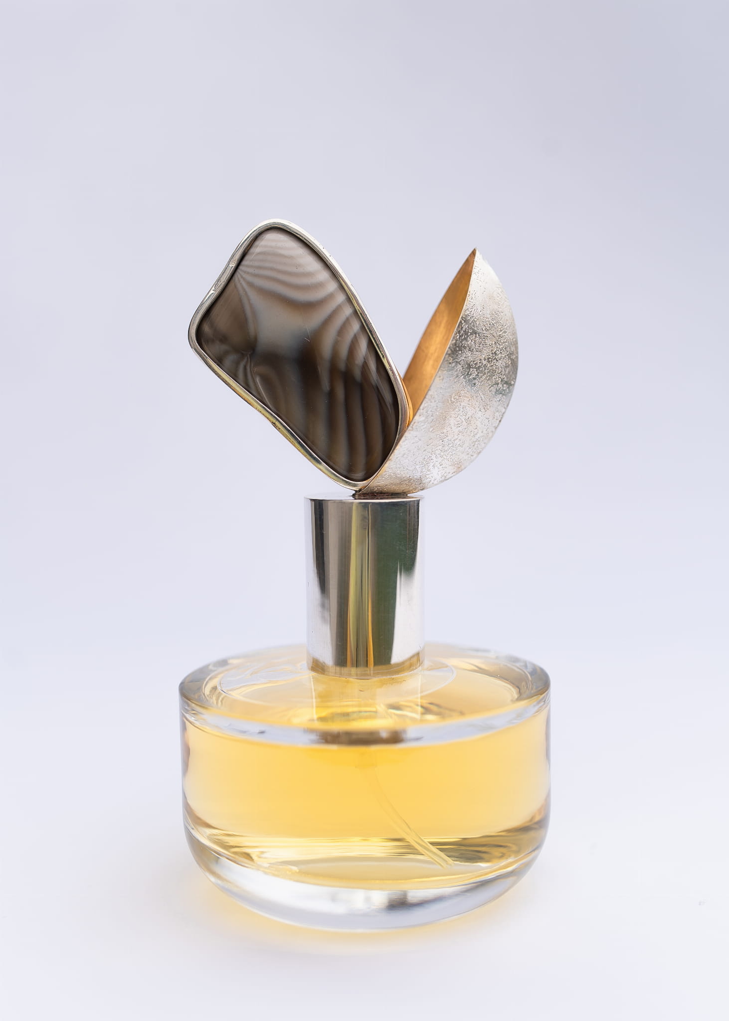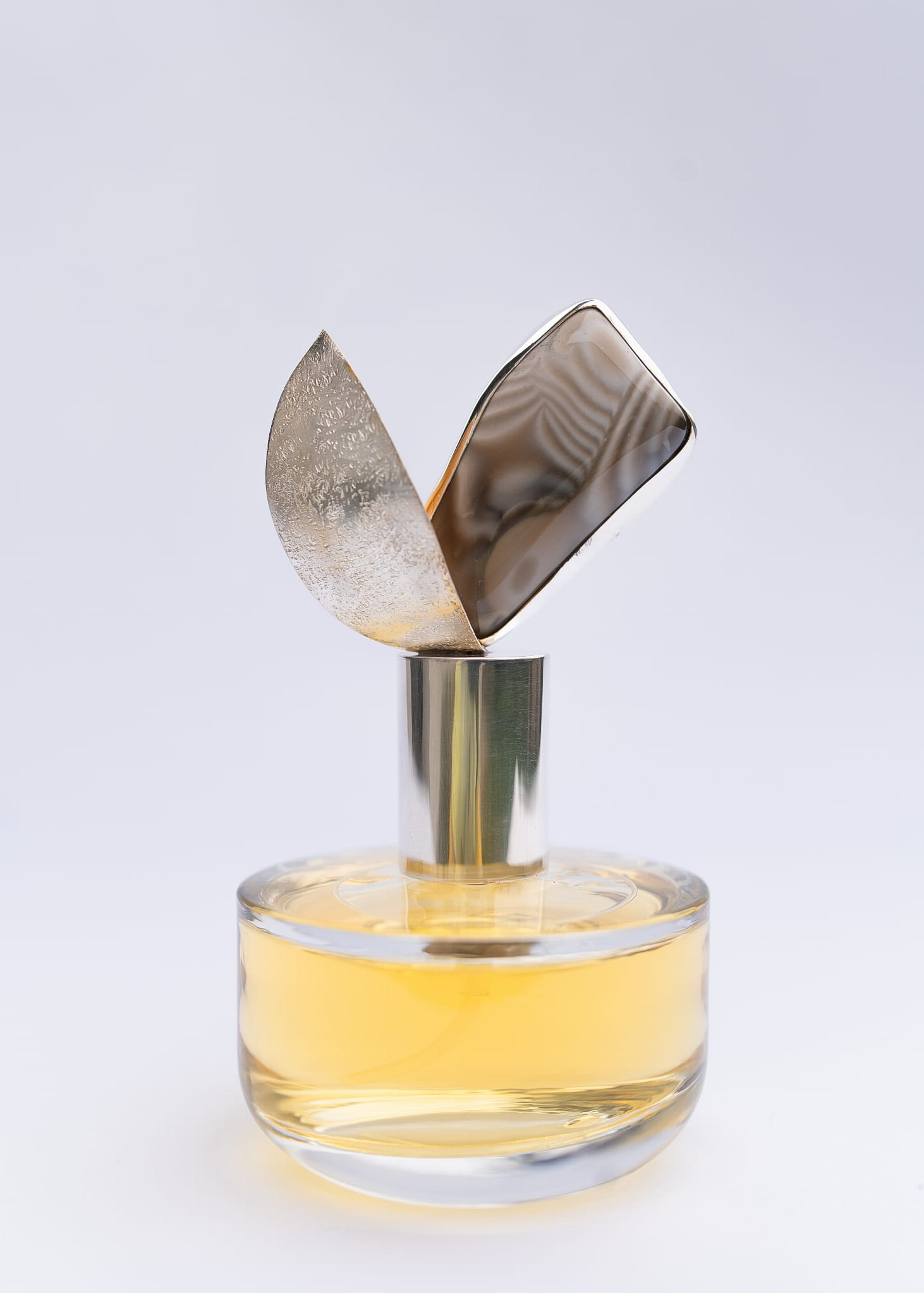 At its heart is banded flint, set in intricately forged 925 silver. The amount of silver used in each bottle ranges from 30 to 50 grams. The choice of banded flint was intentional. It is an endemic stone, found only in one place in the world, my native region of Świętokrzyskie!