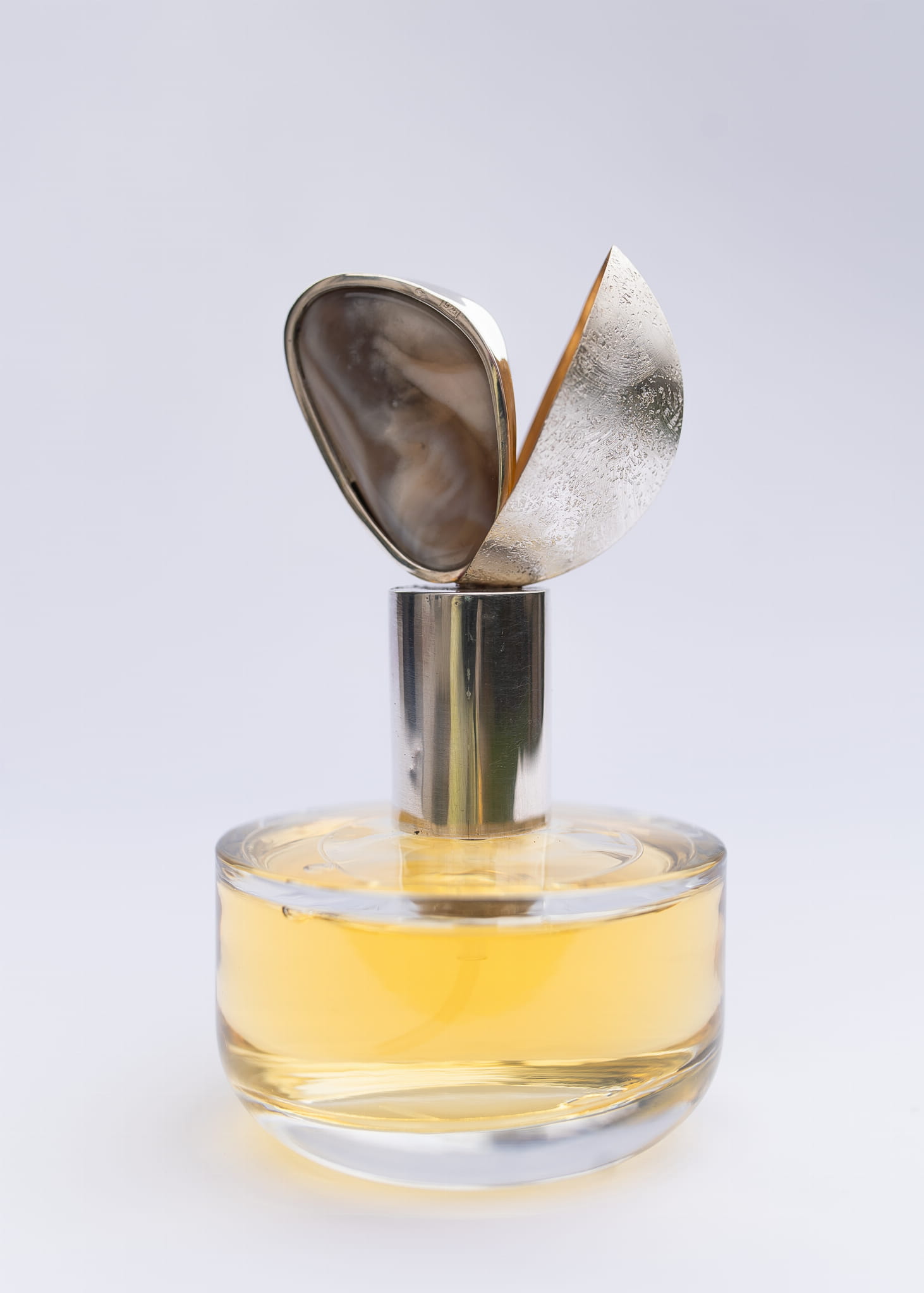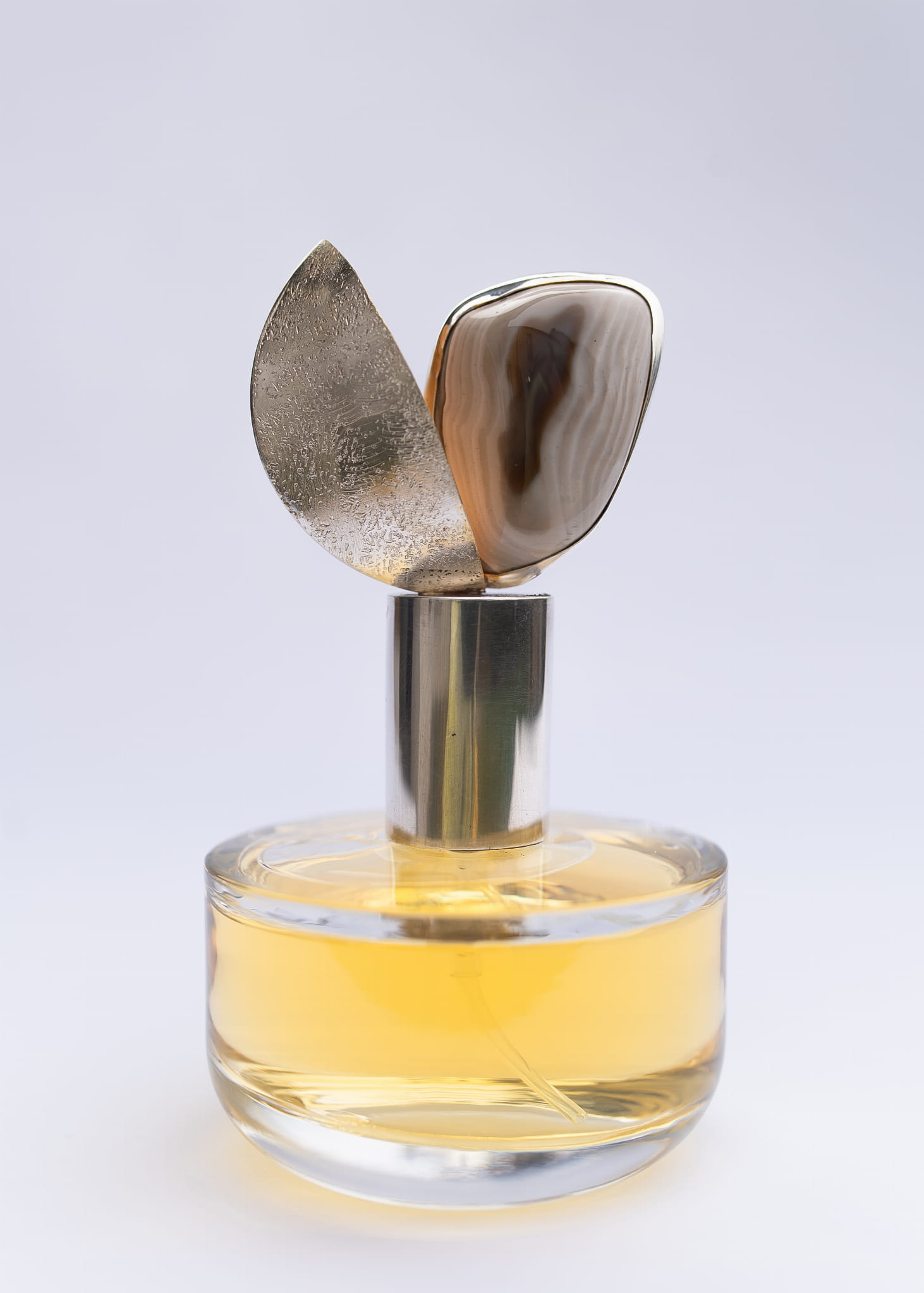 At its heart is banded flint, set in intricately forged 925 silver. The amount of silver used in each bottle ranges from 30 to 50 grams. The choice of banded flint was intentional. It is an endemic stone, found only in one place in the world, my native region of Świętokrzyskie!