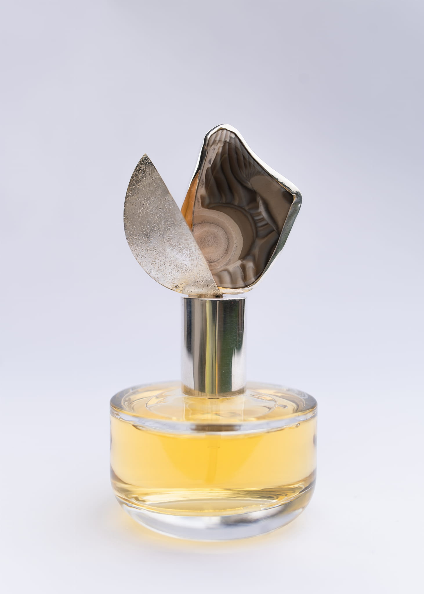 At its heart is banded flint, set in intricately forged 925 silver. The amount of silver used in each bottle ranges from 30 to 50 grams. The choice of banded flint was intentional. It is an endemic stone, found only in one place in the world, my native region of Świętokrzyskie!