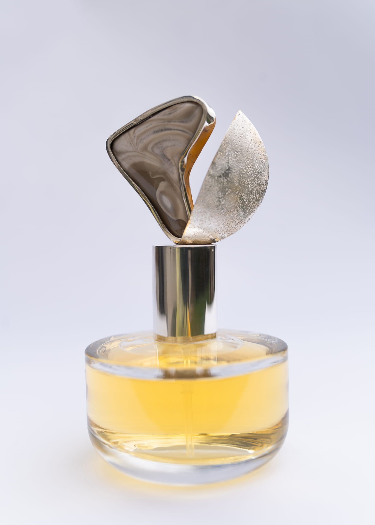 At its heart is banded flint, set in intricately forged 925 silver. The amount of silver used in each bottle ranges from 30 to 50 grams. The choice of banded flint was intentional. It is an endemic stone, found only in one place in the world, my native region of Świętokrzyskie!