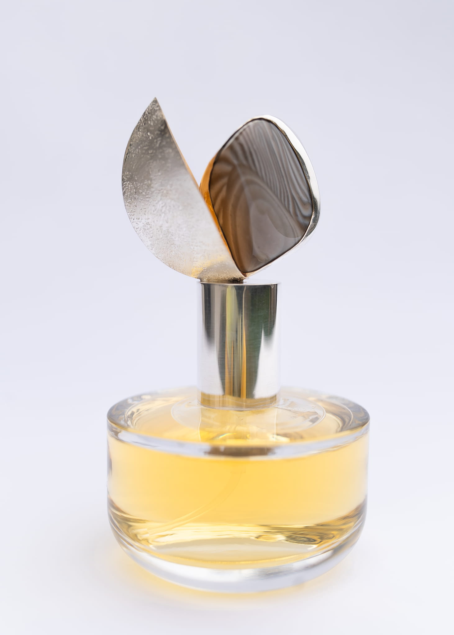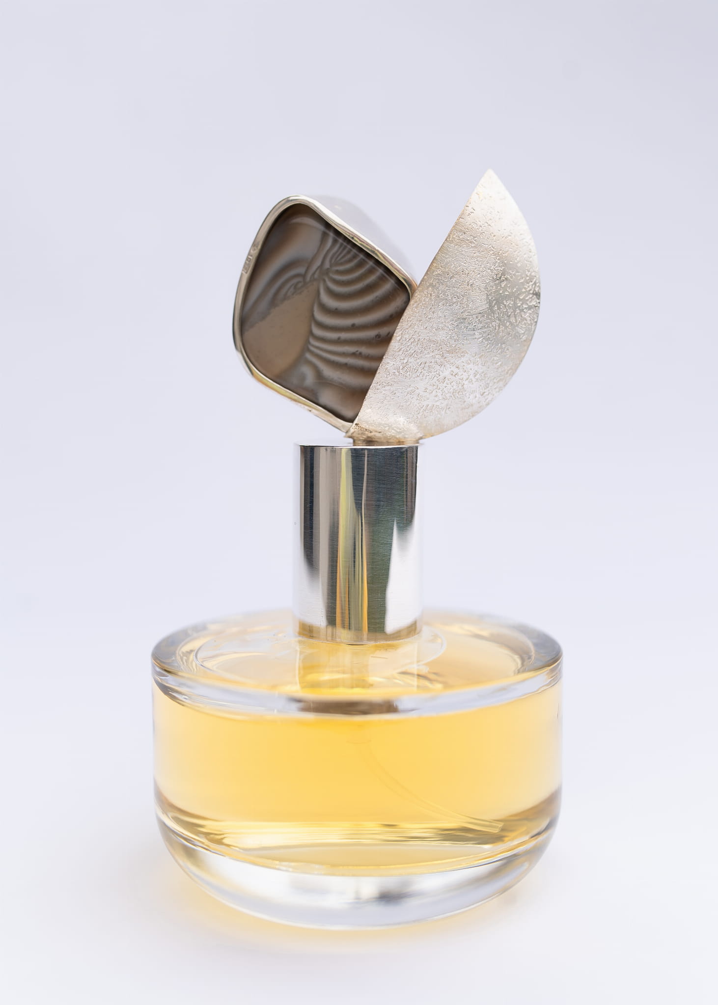 At its heart is banded flint, set in intricately forged 925 silver. The amount of silver used in each bottle ranges from 30 to 50 grams. The choice of banded flint was intentional. It is an endemic stone, found only in one place in the world, my native region of Świętokrzyskie!