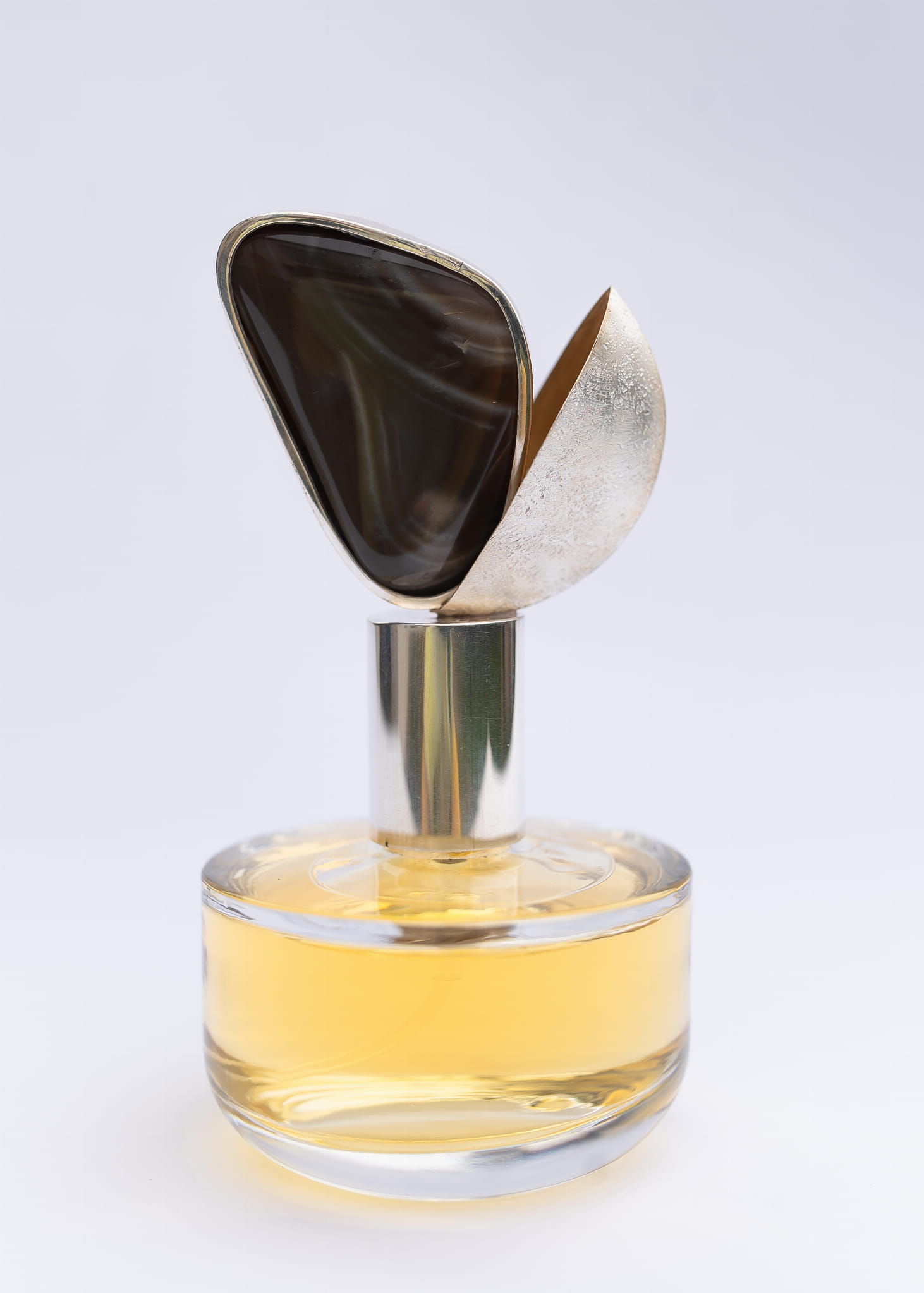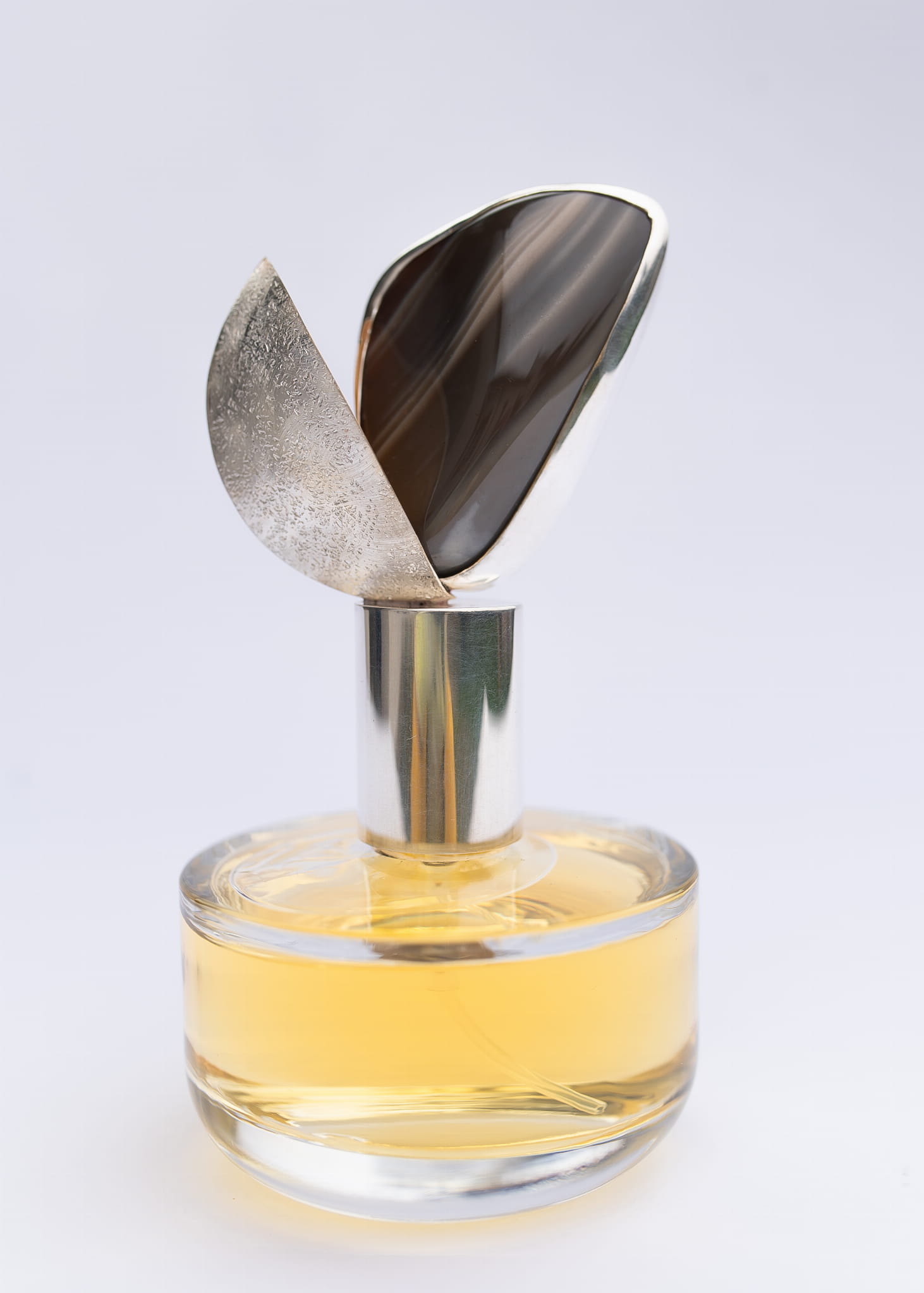 At its heart is banded flint, set in intricately forged 925 silver. The amount of silver used in each bottle ranges from 30 to 50 grams. The choice of banded flint was intentional. It is an endemic stone, found only in one place in the world, my native region of Świętokrzyskie!